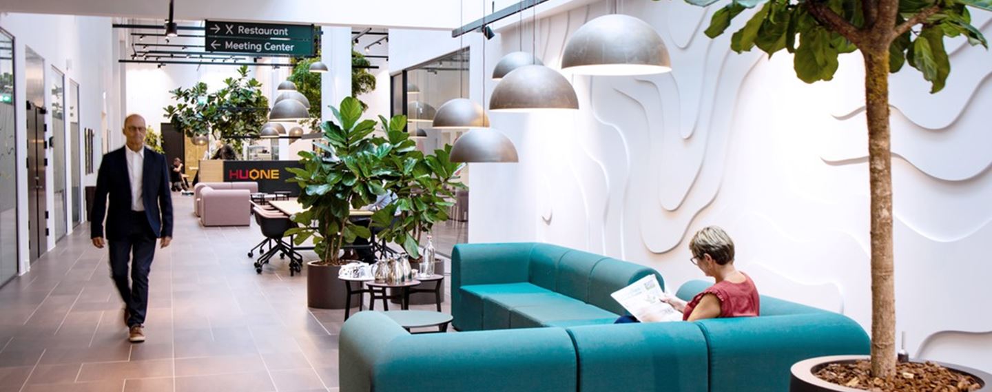 Lyse kontorlokaler med kantine og fitnessfaciliteter